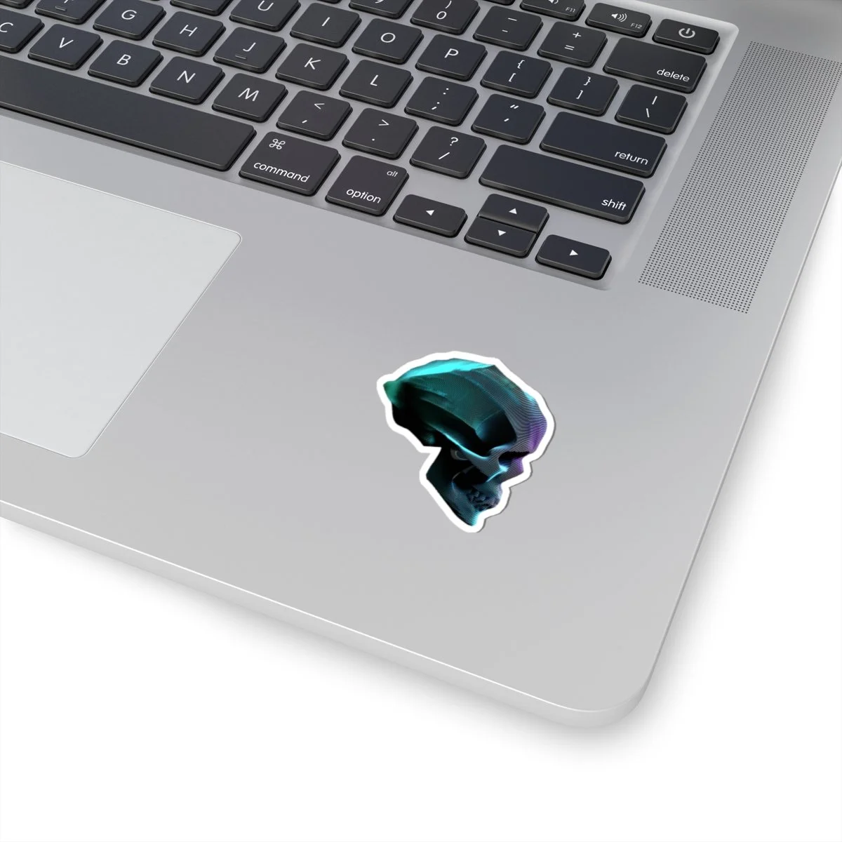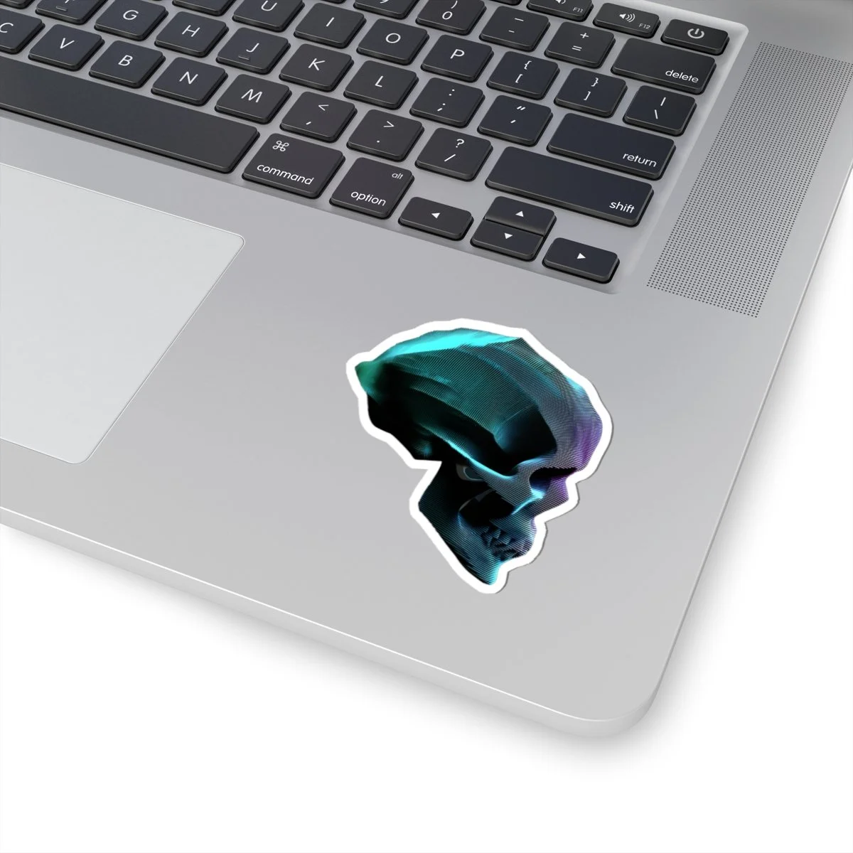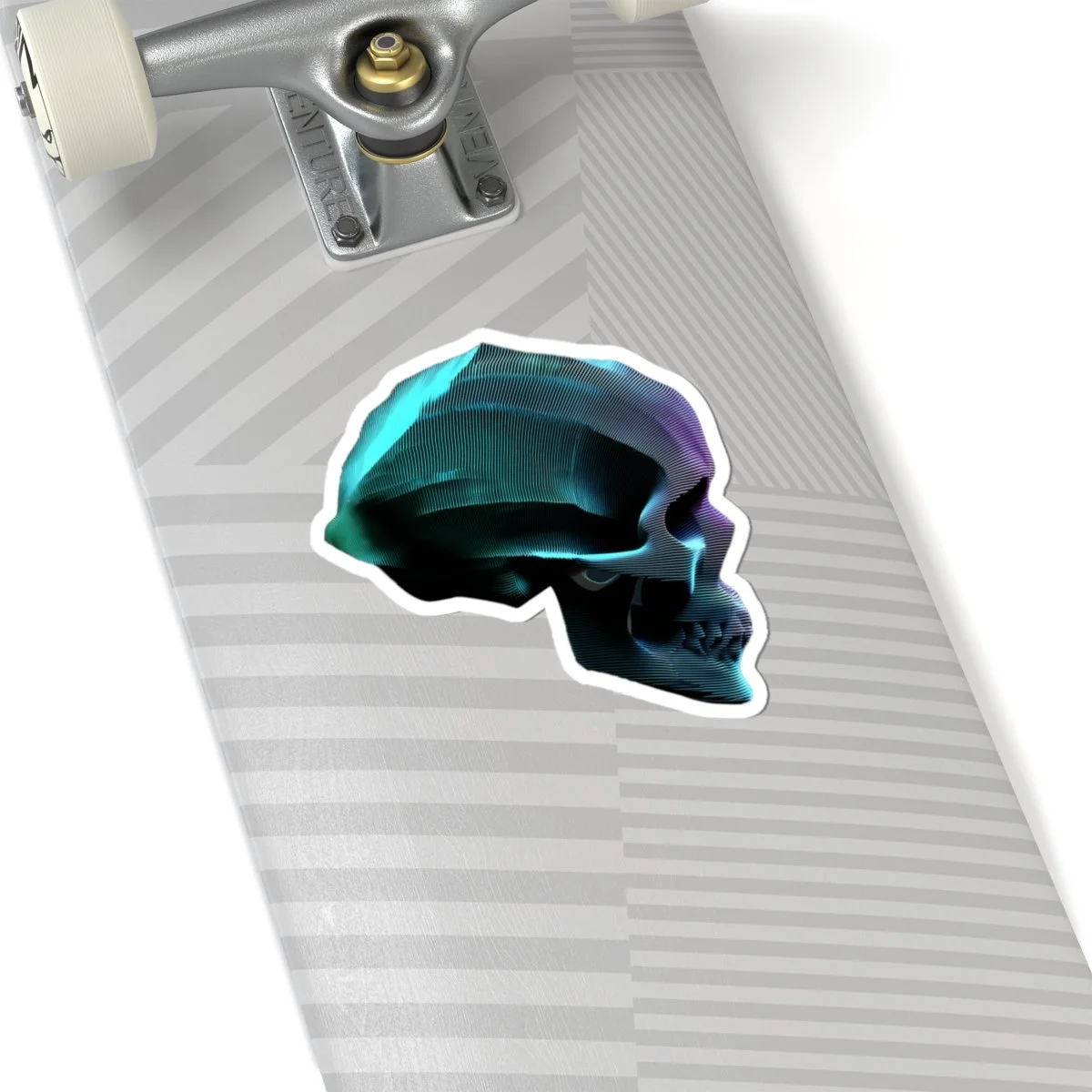 A data skull sticker with vibrant colors and a glossy paper finish, perfect for decorating laptops, journals, and windows. Designed for adults who enjoy unique and edgy imagery. Ideal for