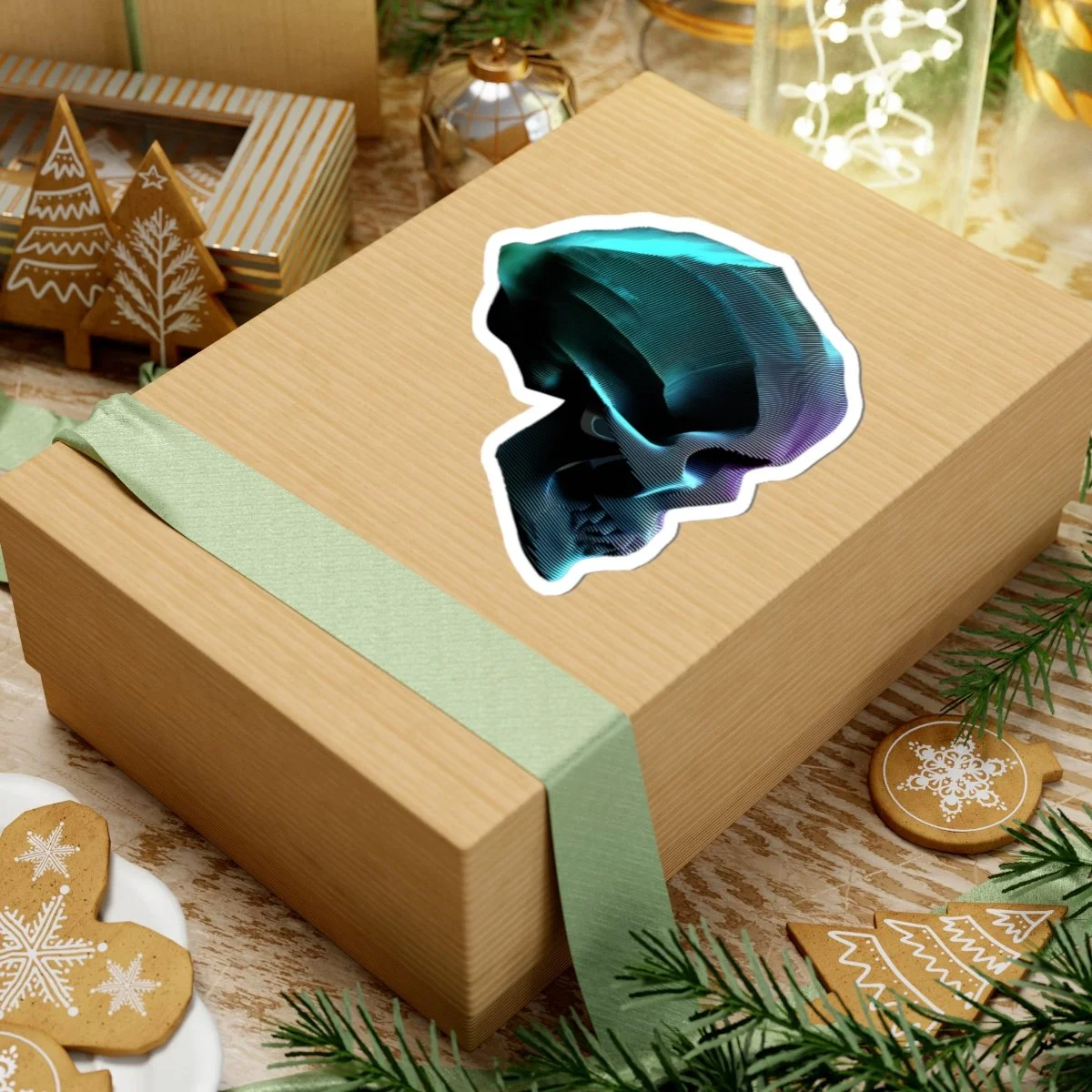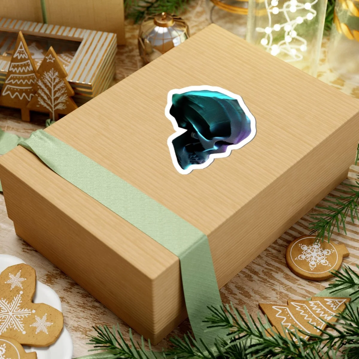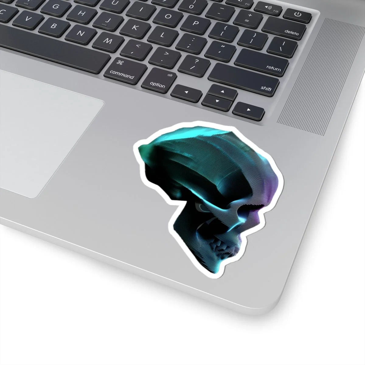 A data skull sticker with vibrant colors and a glossy paper finish, perfect for decorating laptops, journals, and windows. Designed for adults who enjoy unique and edgy imagery. Ideal for